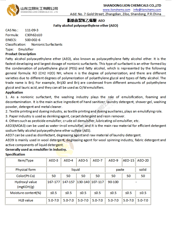 TDS-Fatty alcohol polyoxyethylene ether (AEO)