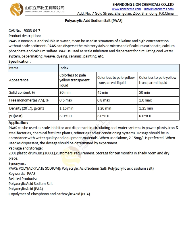 TDS-Polyacrylic Acid Sodium Salt (PAAS)