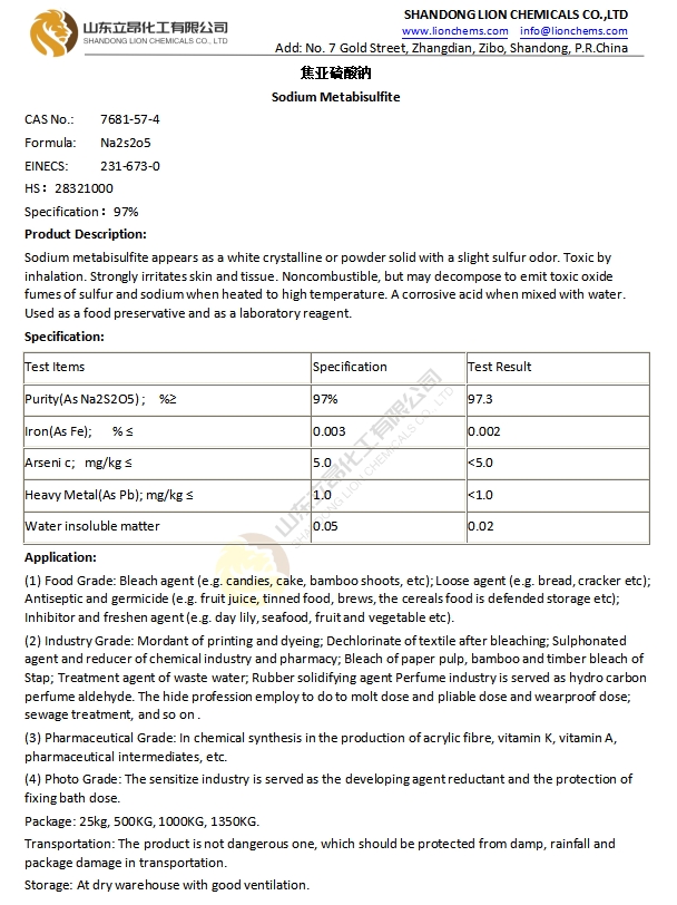TDS-Sodium Metabisulfite Food Grade/Technical Grade