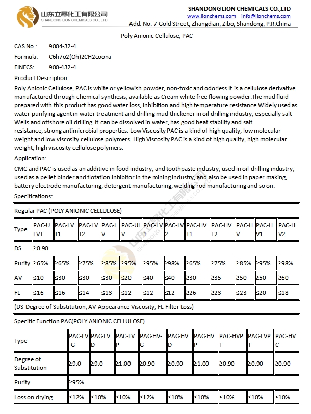 Polyanionic Cellulose PAC LV/HV