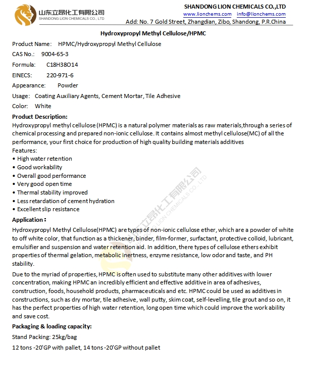TDS-Hydroxypropyl Methyl Cellulose HPMC