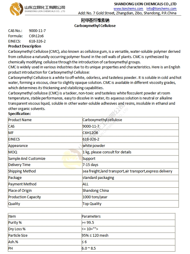 Carboxymethyl Cellulose CMC LV/HV