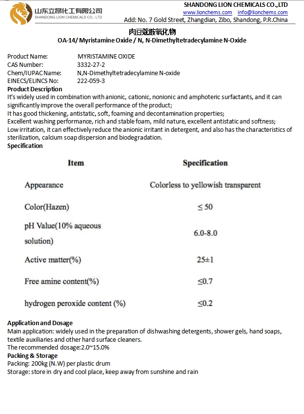 TDS-OA-14/ Myristamine Oxide / N, N-Dimethyltetradecylamine N-Oxide