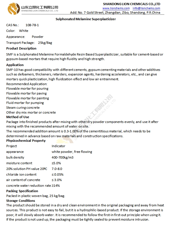 TDS-Sulphonated Melamine Superplasticizer