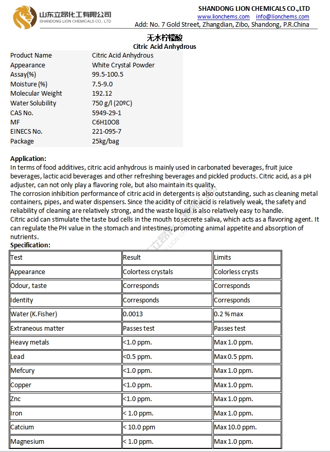 TDS-Citric Acid Anhydrous