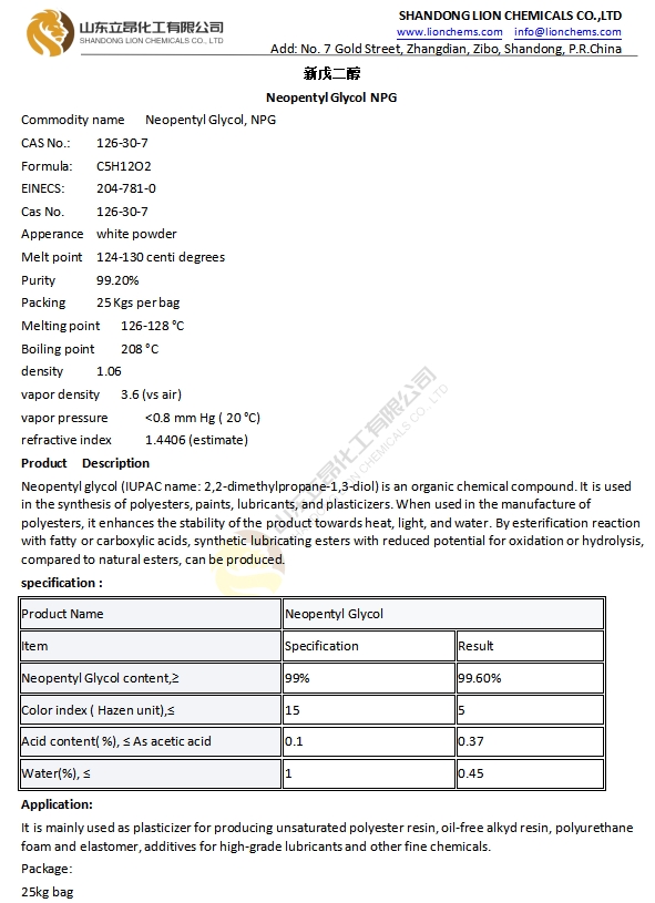 TDS-Neopentyl Glycol NPG