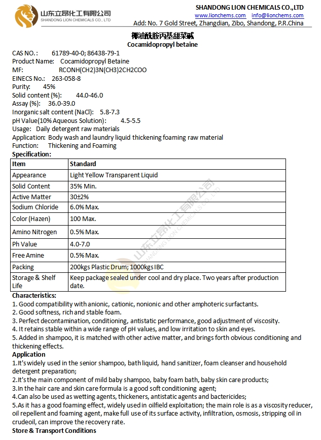 TDS-Cocamidopropyl betaine CAPB CAB 35% 45%