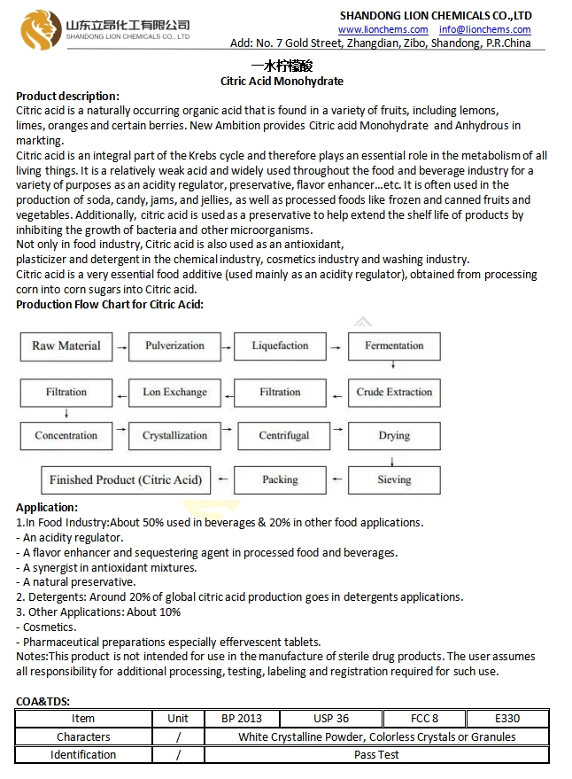 TDS-Citric Acid Monohydrate