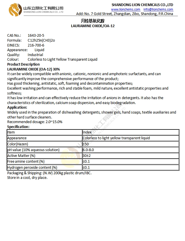 TDS-Cocamidopropylamine oxide/ CAO 30%