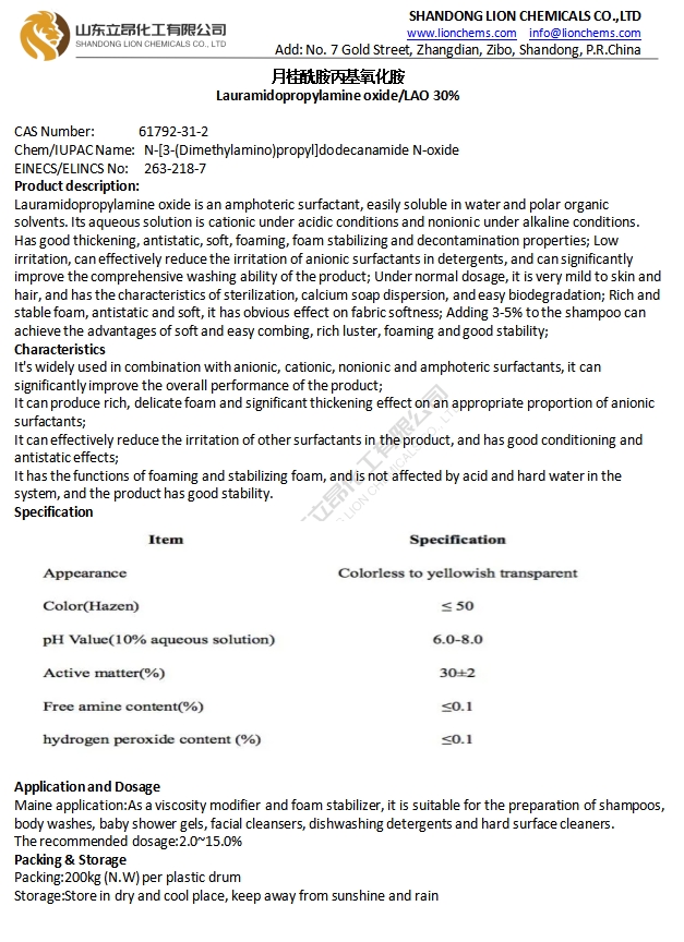TDS-Lauramidopropylamine oxide/LAO 30%